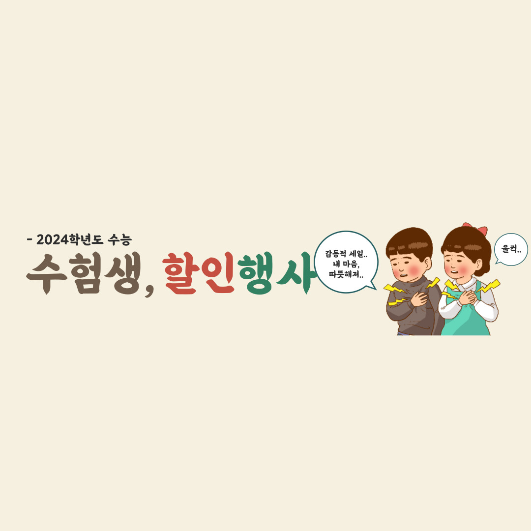 2024학년도 수능을 치르시느라 고생 많으셨습니다. 수험생 여러분들의 어깨에 실린 과중한 부담이 이제 끝났어요! 이제는 스트레스를 해소하고 즐거운 시간을 보낼 때가 되었습니다. 그래서, 저희는 여러분을 위한 할인 혜택과 이벤트 정보를 소개해 드리려고 합니다. 아래 목차를 확인하시고, 오직 수험생들을 위한 혜택을 놓치지 않도록 하세요.